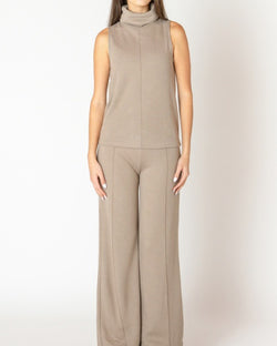 This soft and comfortable top features a rolled neckline, a sleeveless silhouette and a front seam detail. Pair with the matching pants for a chic set look or style with everything from jeans to skirts to pants.