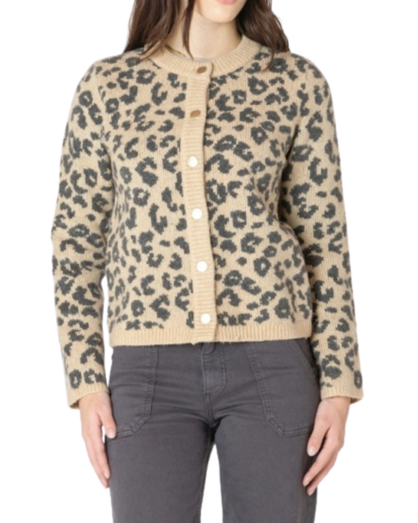 Add a wild twist to your wardrobe with this cozy leopard cardigan, perfect for fun, effortless style. Its playful pattern pairs perfectly with jeans or leggings for a look that’s both comfy and fierce.