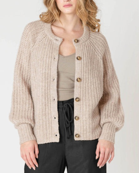 This soft knit cardigan features a crew neckline and a button down front. A must for layering over everything from dresses top tops to tees, this is a timeless wardrobe staple.