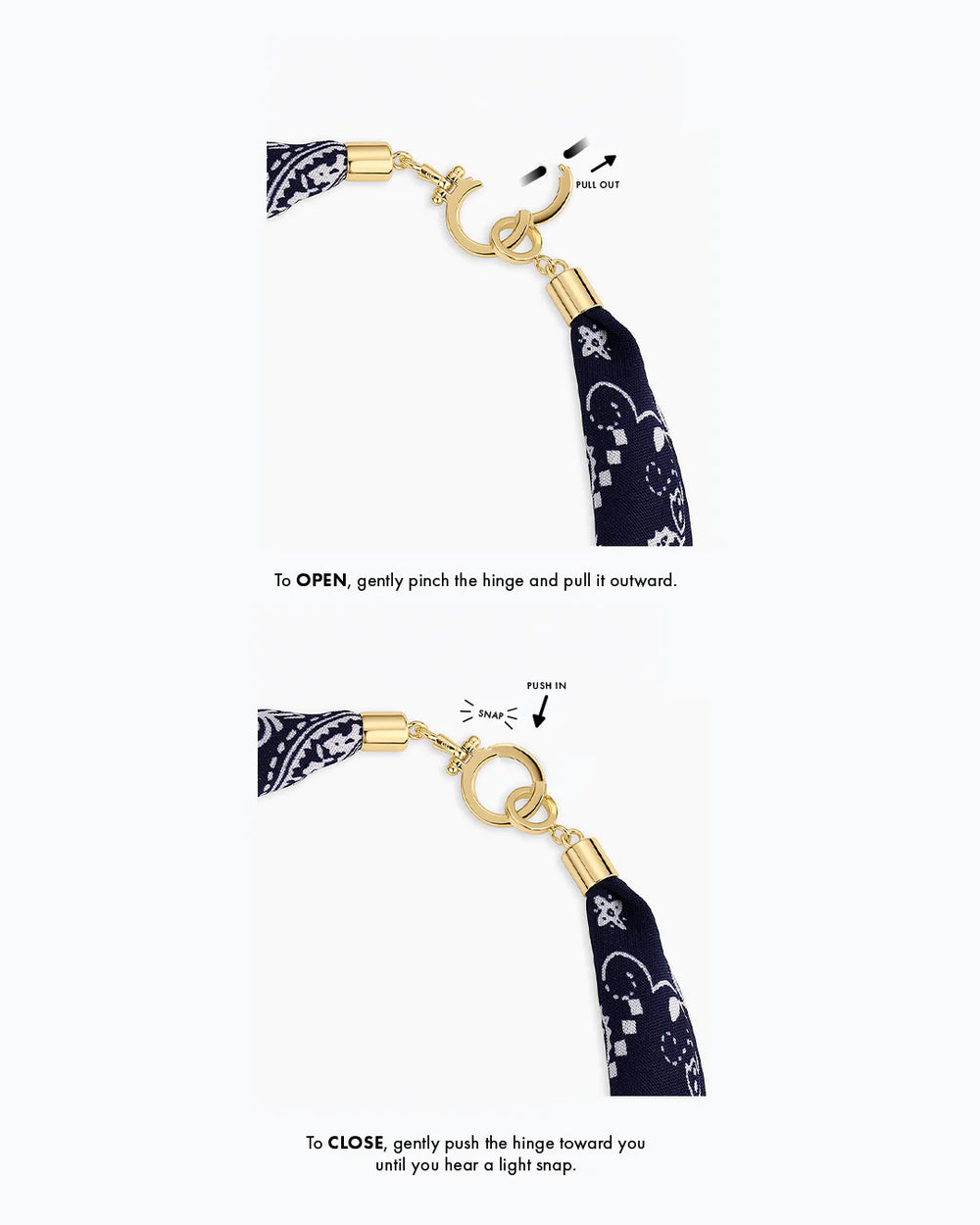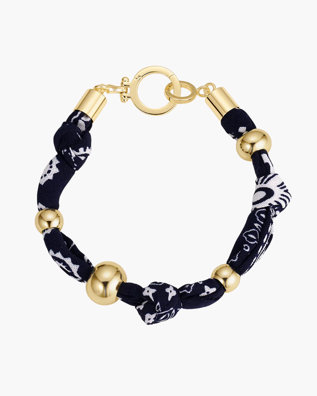 This wrap-style design bracelet blends classic bandana aesthetics with modern edge, perfect for layering with delicate chains or wearing solo. A versatile piece that transforms any jewelry collection.