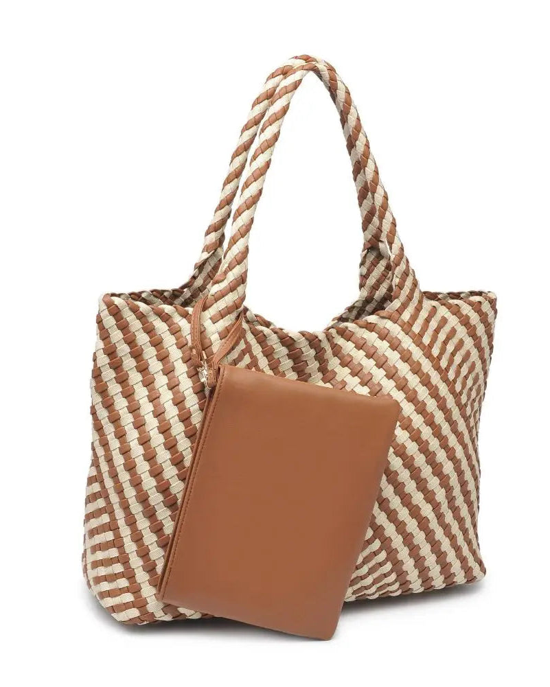 Introduce a touch of elegance to your wardrobe with the Solana Woven Tote. Crafted from premium vegan leather, this tote is a perfect blend of unique style, functionality, and comfort. It is not just an accessory, but a statement piece that complements your look and lifestyle. Elevate your style and express your individuality with this trendy and versatile tote.