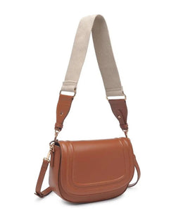 Crafted from sleek vegan leather, this saddle bag crossbody exudes sophistication with its smooth texture and intricate stitch details. The snap button closure ensures security, while the additional strap offers versatility in styling.