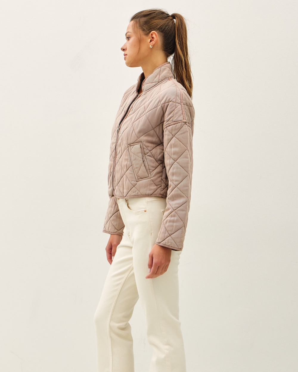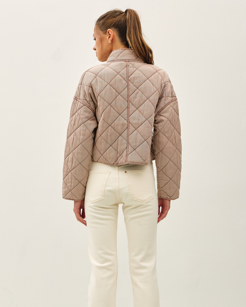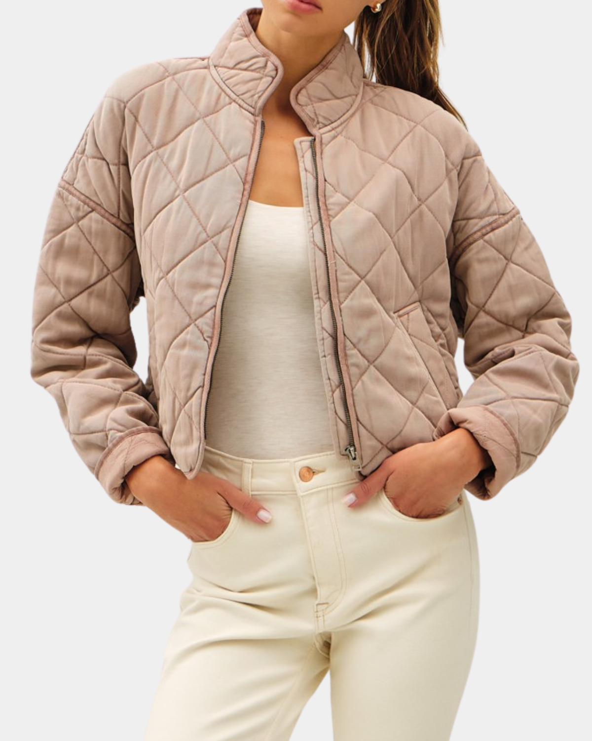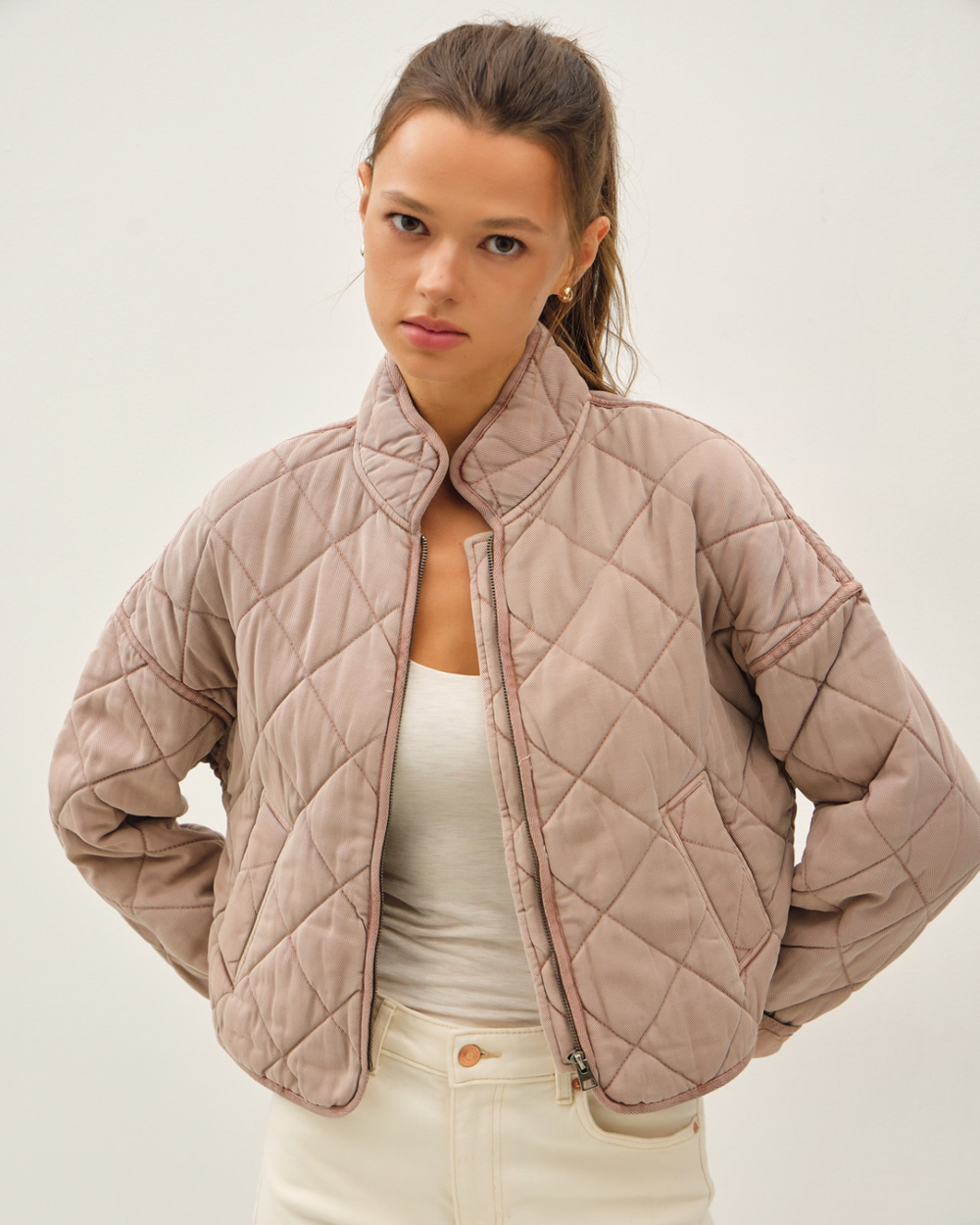 Cozy up in this garment-washed quilted puffer jacket—your new fall and winter go-to! The cropped silhouette pairs perfectly with high-waisted bottoms, while the soft mauve hue works with everything in your closet.