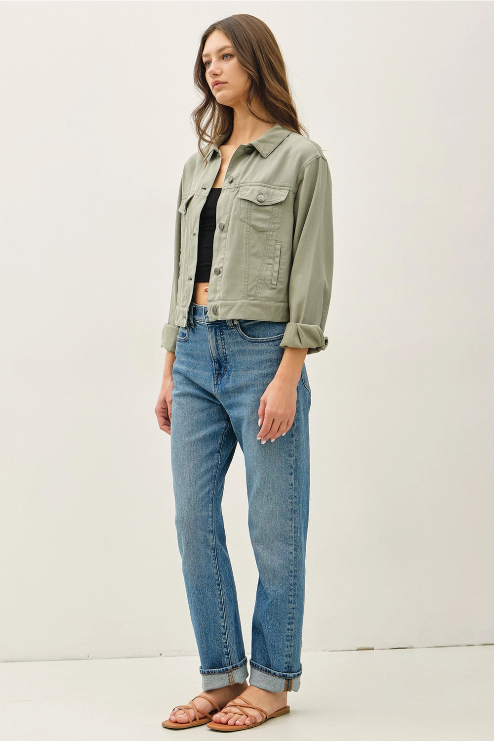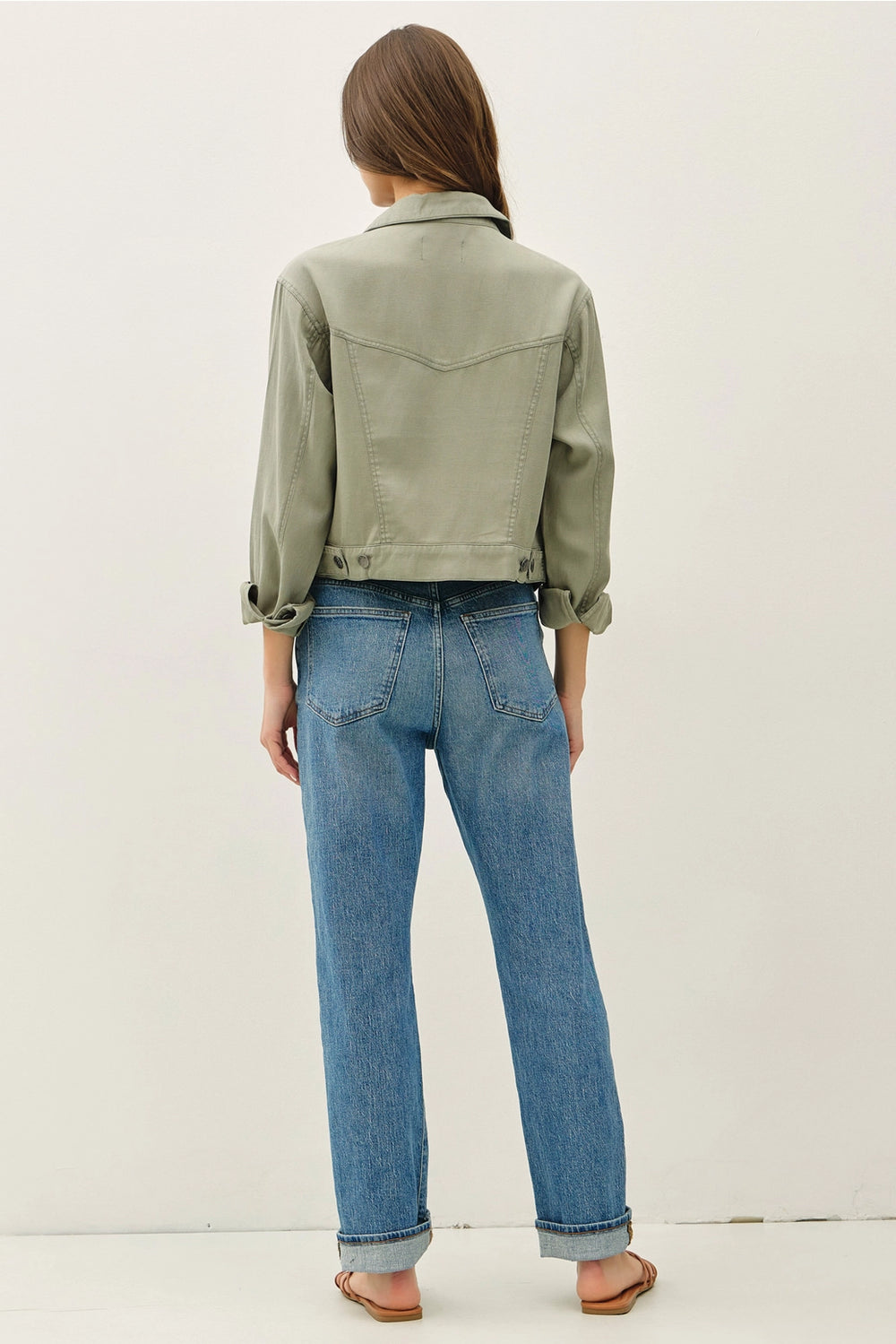 Effortlessly chic western jacket crafted from soft Tencel fabric with a relaxed, garment-washed aesthetic. The lightweight construction makes it perfect for layering through transitional seasons, while the timeless tone pairs seamlessly with any wardrobe.