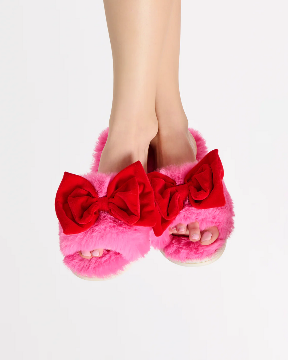 Celebrate the season in style with the Noelle Slippers, featuring a soft faux fur upper and a show-stopping oversized velvet bow. Cozy and comfy with a cushioned footbed and grippy sole, they’re ideal for lounging, gifting, or adding a fun pop to your chilly mornings.