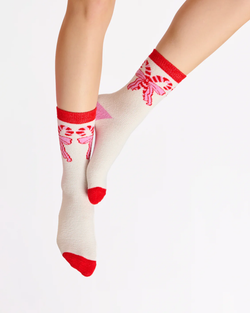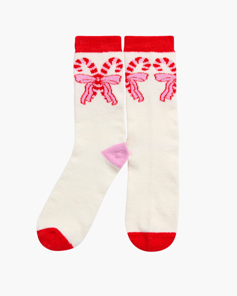 Sprinkle some holiday magic on your feet with the Candy Cane Bow Socks in ivory, featuring playful red cuffs, toes, and a sweet candy cane bow in red and pink. Cozy, stretchy, and full of cheer, they’re perfect for lounging, gifting, or adding a fun flair to any festive gathering!