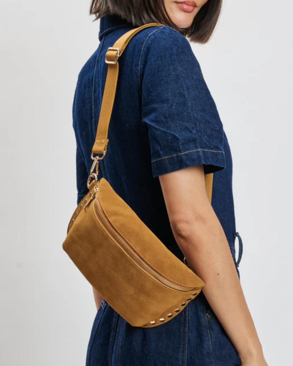 Step out in style with the Gizelle Suede Belt Bag—where chic meets convenience for the woman on the move. With its studded flair and versatile straps, it’s your perfect partner from sunrise to sunset.