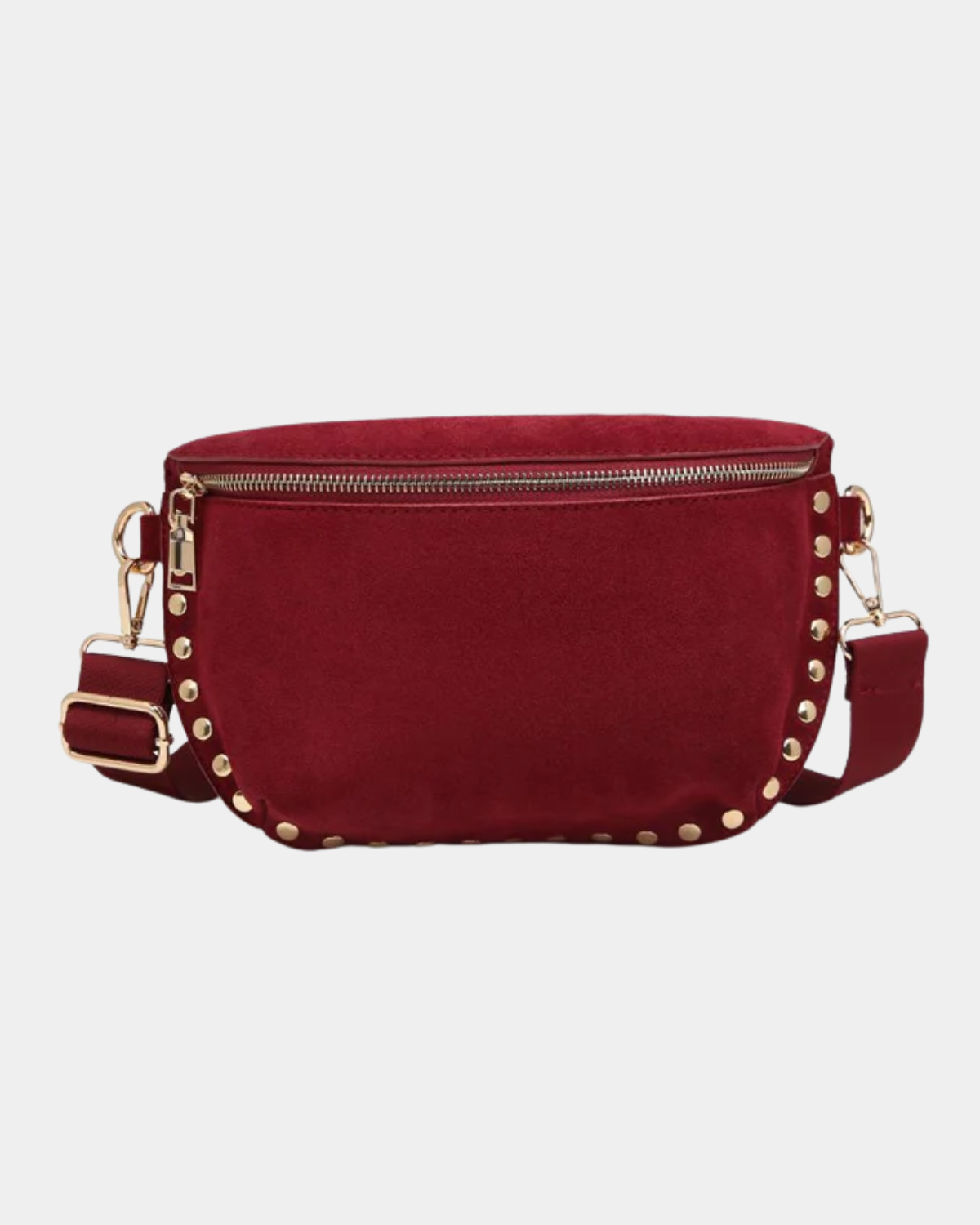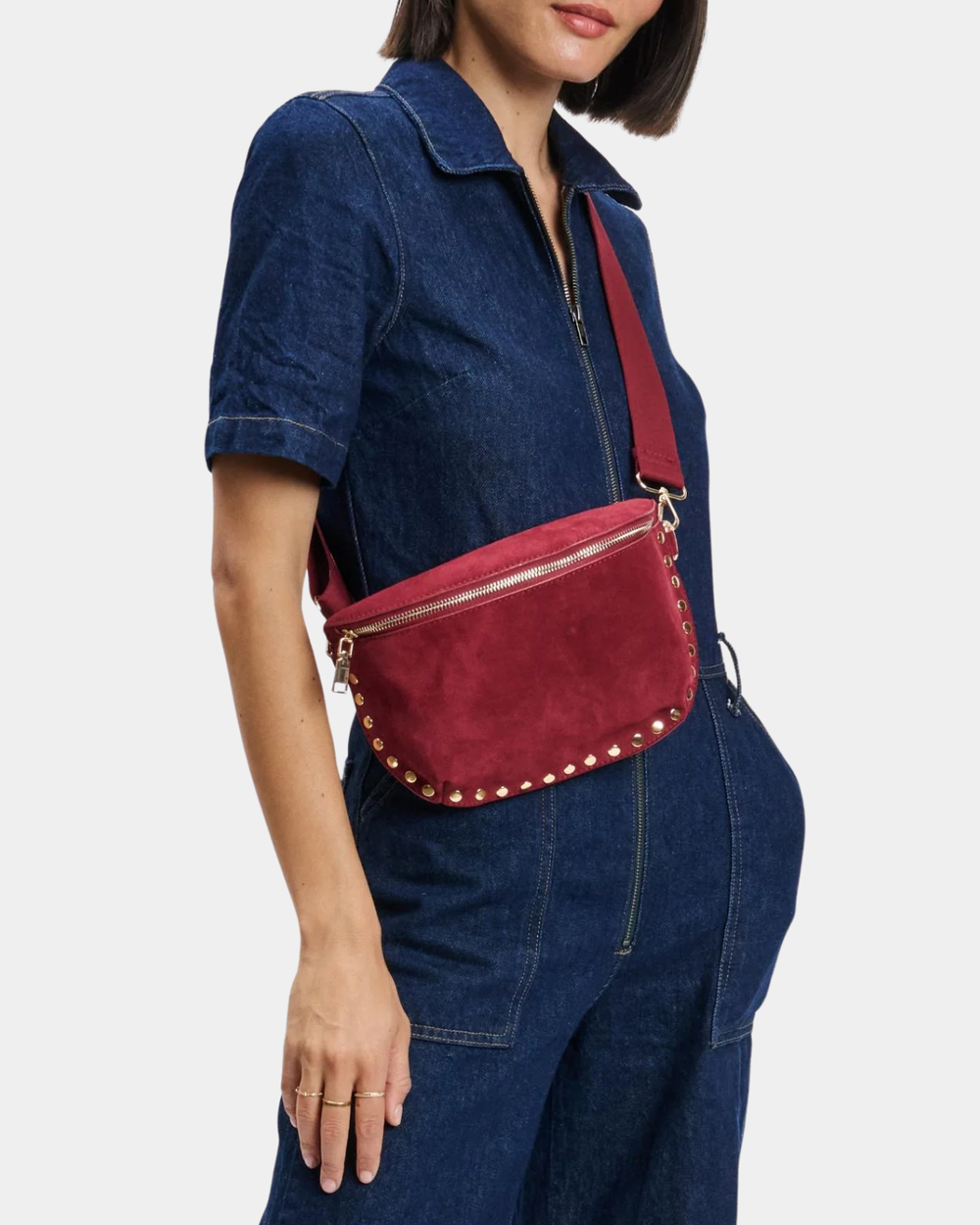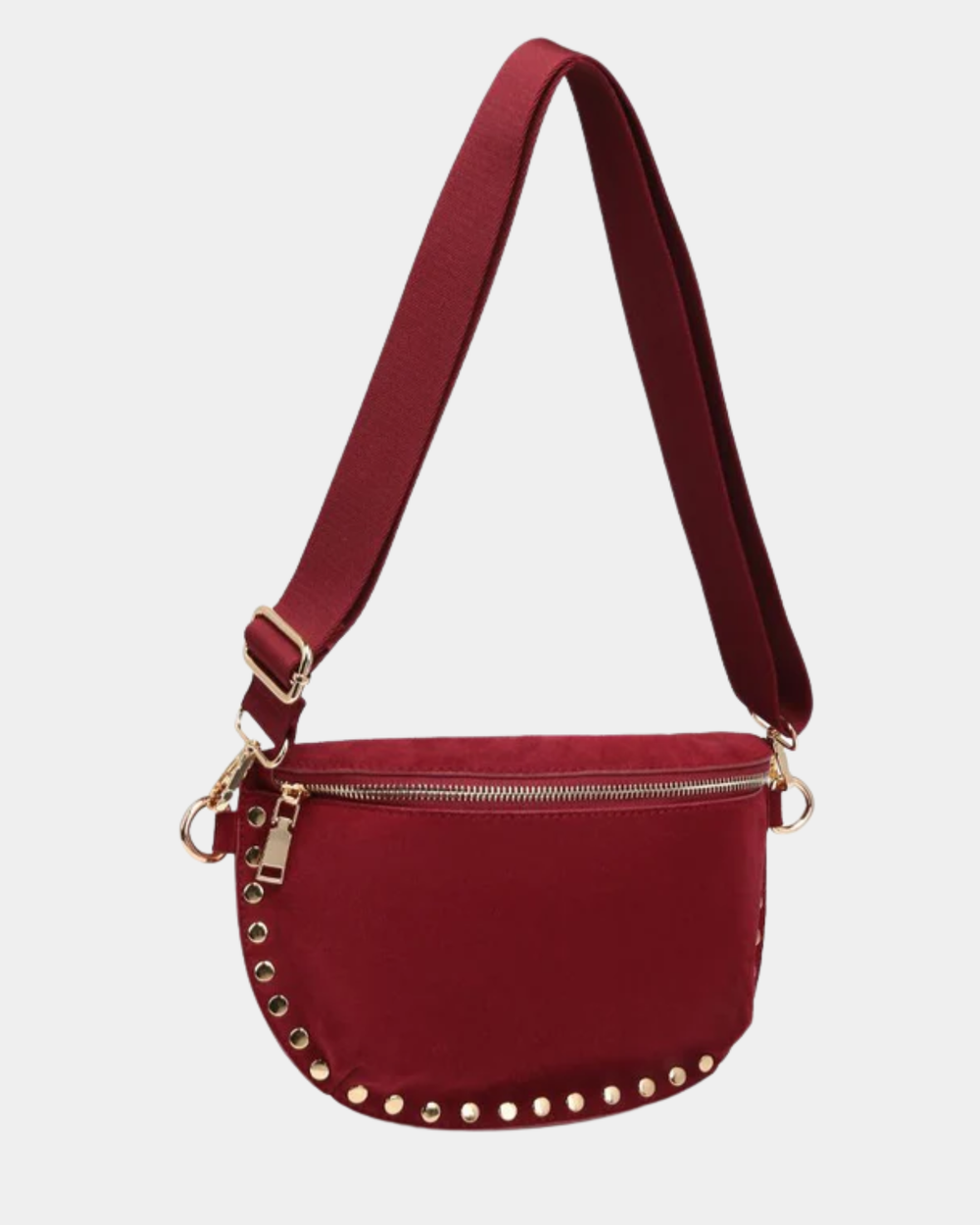 Step out in style with the Gizelle Suede Belt Bag—where chic meets convenience for the woman on the move. With its studded flair and versatile straps, it’s your perfect partner from sunrise to sunset.
