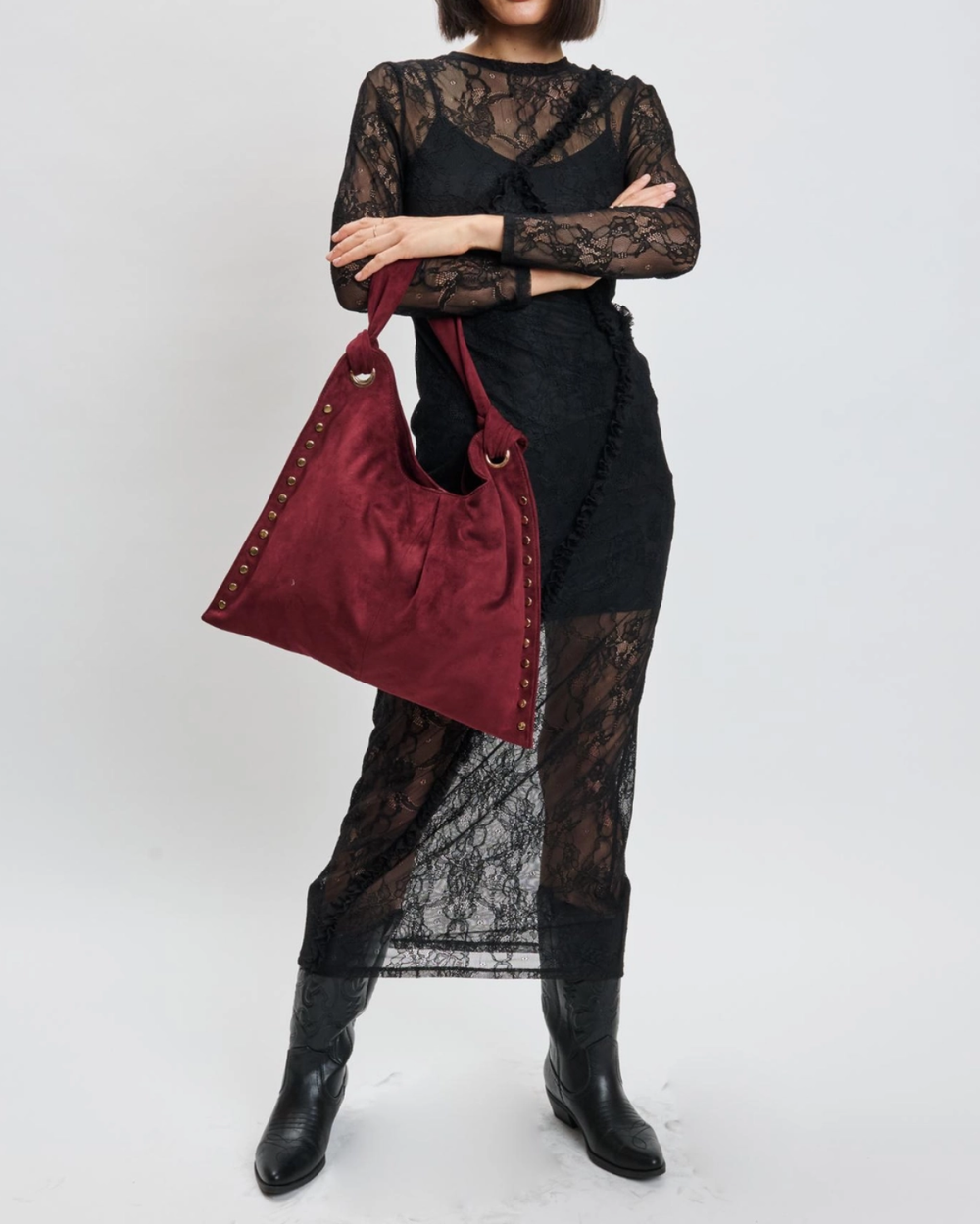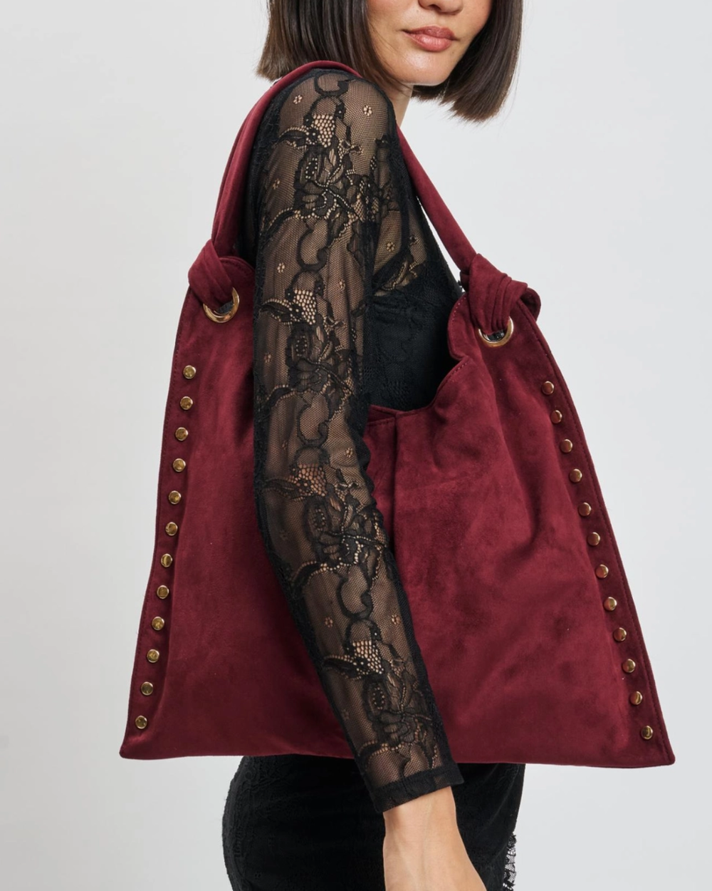 The Meadow Hobo combines chic style and practicality with its soft, plush exterior and trendy studded details. Its knotted handles offer a comfy grip, while the organized interior keeps your essentials close. Perfect for day-to-night looks, this bag adds a playful touch to any outfit.