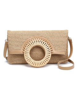 The Tessa Crossbody blends artisanal craftsmanship with contemporary design. Its woven construction and sculptural rattan accent create an understated elegance, while the detachable strap offers versatile styling—wear it as a crossbody or clutch. Thoughtfully proportioned to hold your essentials without excess.