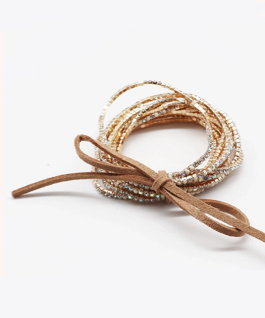 Sparkle and shine with our 12 layer strand stretch crystal stone bracelets in a trendy tan hue. With an easy stretch design, these bracelets provide both style and comfort. Perfect for adding a touch of elegance to any outfit. (Bracelets) never looked so good!