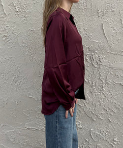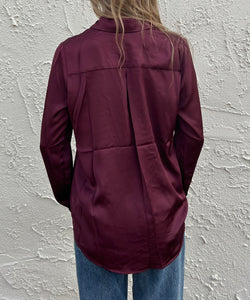 A timeless button-front blouse has a relaxed silhouette in certified recycled materials. Detailed with a single pleat at the back, this long-sleeve style is a refined piece that you can wear in any season.