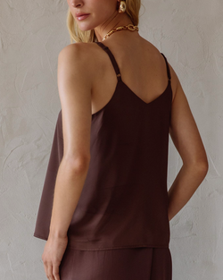 Keep it cool and casual with the Double Strap Cami Top in rich espresso. Its playful double straps add a flirty twist to a classic silhouette, making it perfect for layering or wearing solo on sunny days. Soft and versatile, it’s your new go-to for effortless style with a fun edge.