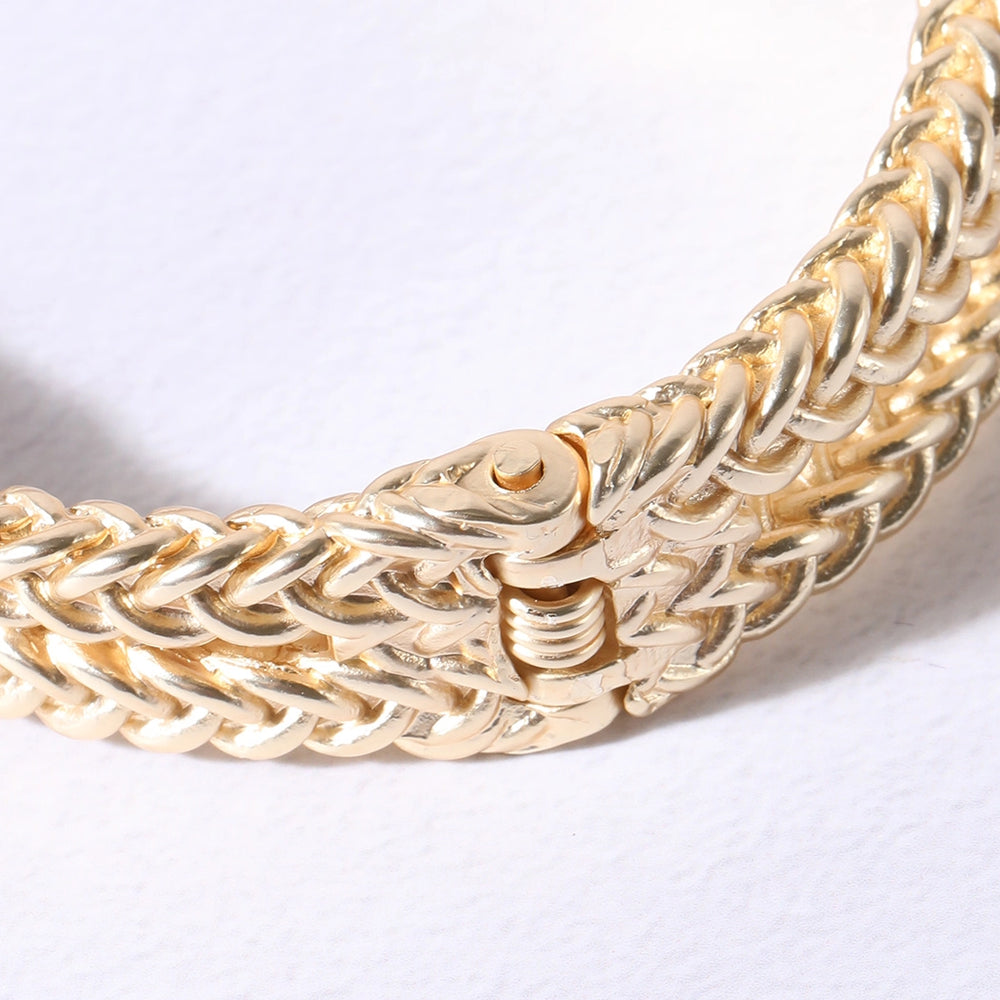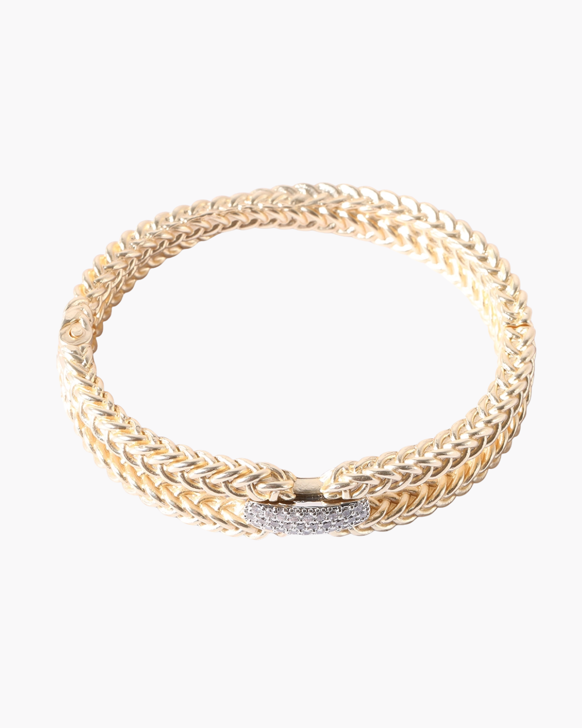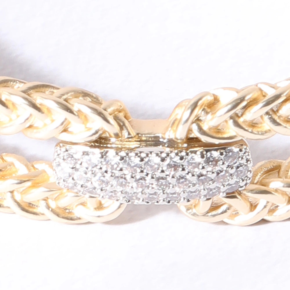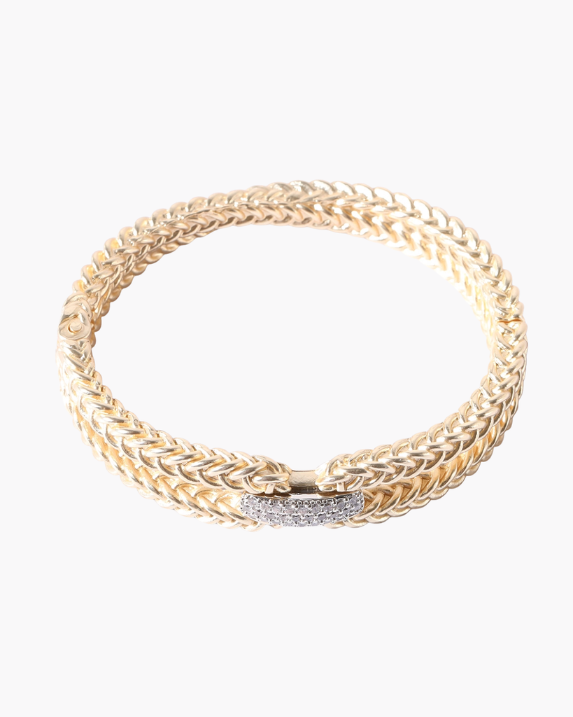 Elegant double chain bangle featuring a sophisticated CZ crossover bar detail. The twisted line design creates a refined, layered look that transitions seamlessly from day to evening wear.