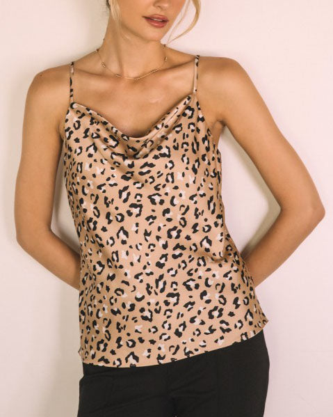 This satin like cami top features a classic leopard print. A must to wear solo or for layering under a blazer or cardigan, this top is a wardrobe staple for year-round wear.