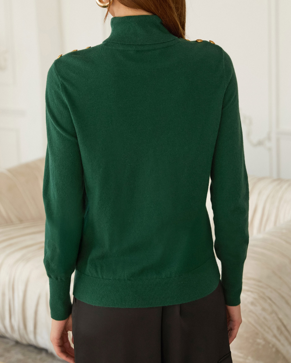 Elevate your wardrobe with this turtleneck sweater featuring elegant button detailing along the shoulder. Its sleek design offers both warmth and timeless style, perfect for refined everyday wear.