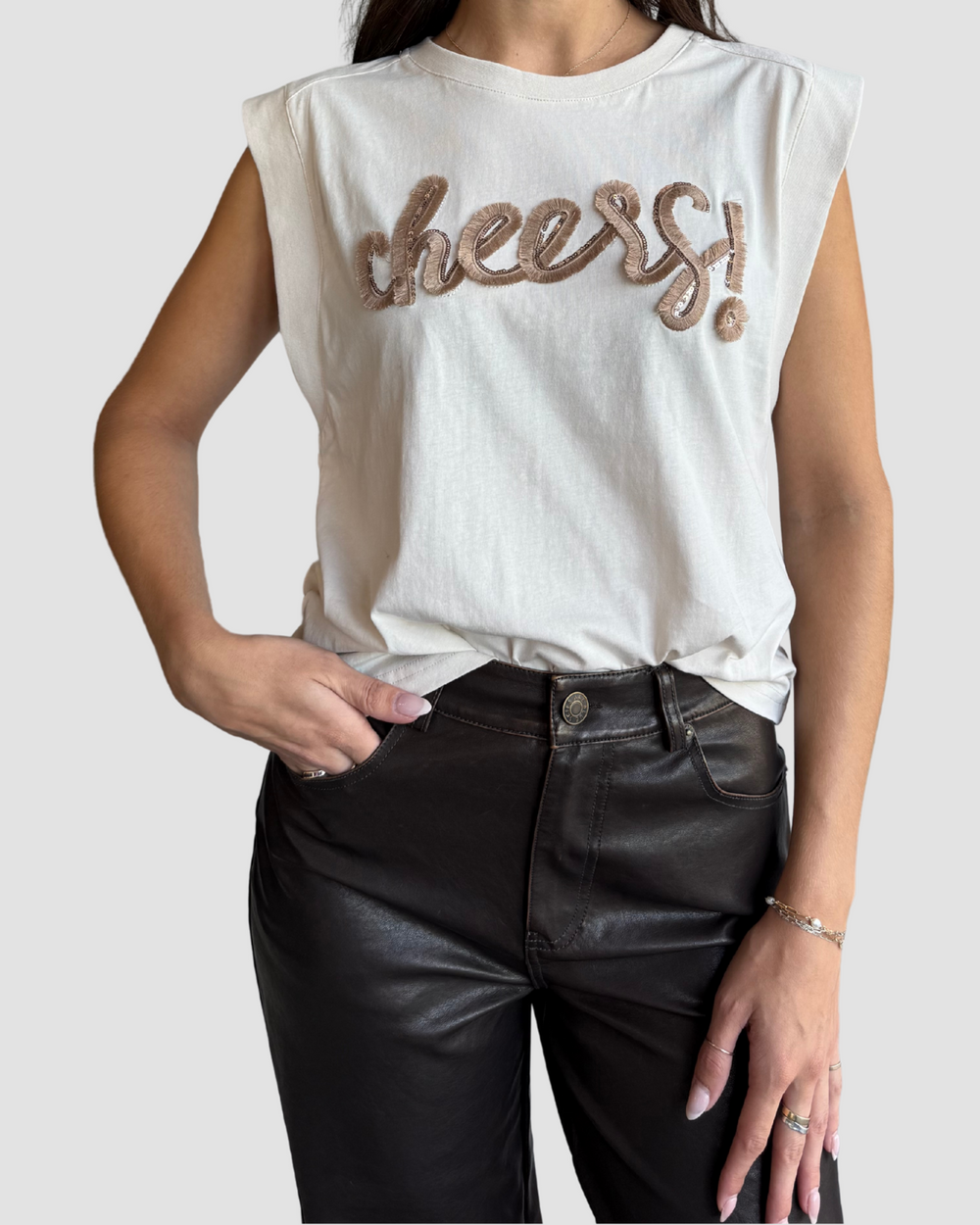 Celebrate every moment in the Cheers Top, a creamy champagne dream that sparkles with effortless style. Perfect for raising a glass or turning heads, this top brings the party wherever you go!