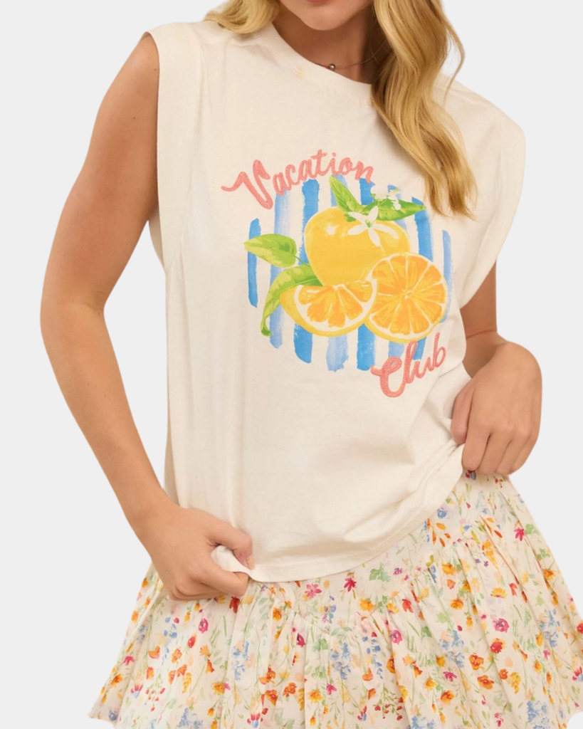 Make a bold statement with this sleeveless top, complete with eye-catching embroidered graphics that bring personality and texture to your look. Comfortable and versatile, it pairs beautifully with denim, tailored pants, or skirts for endless styling possibilities.