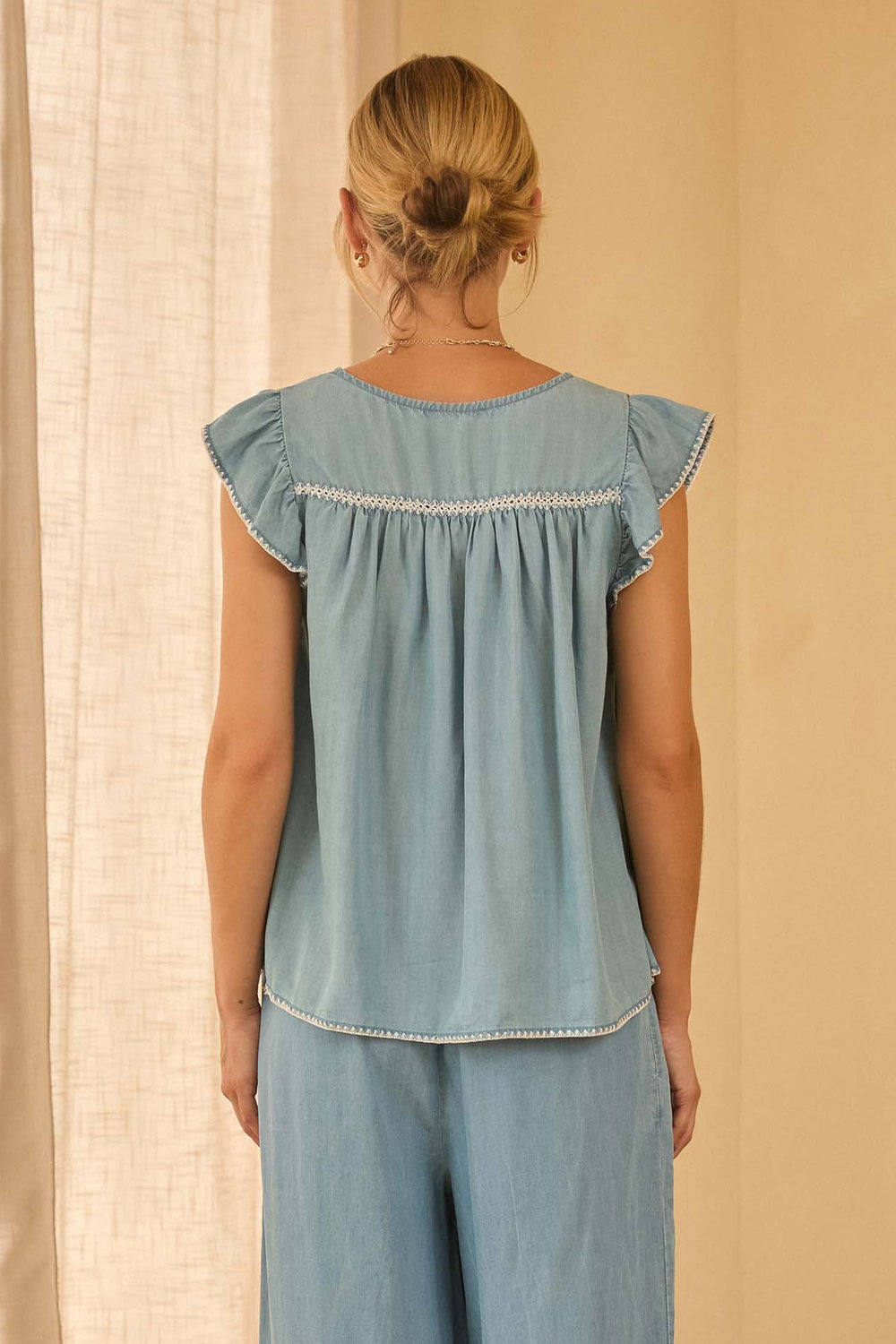 This breezy Tencel top is your ticket to effortless style. Adorned with sweet embroidered touches and cut for maximum comfort, it's lightweight enough for hot days and versatile enough to layer whenever you please.