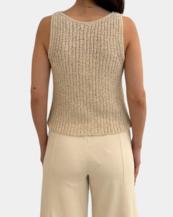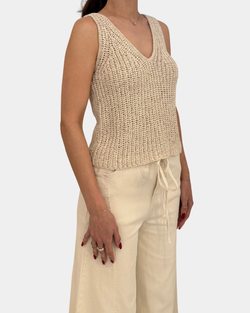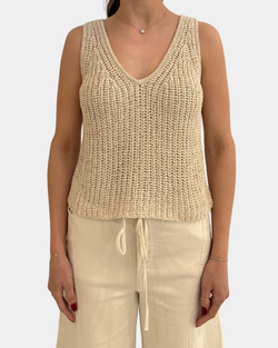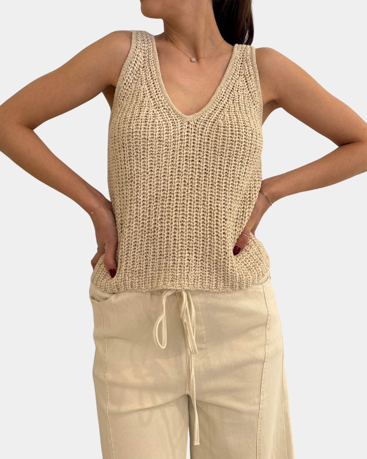 Effortlessly chic and oh-so-versatile, this natural knit tank top features a flattering V-neckline perfect for layering or going solo. Soft, breathable fabric keeps you comfortable all day long, while the timeless neutral shade pairs with everything in your closet.