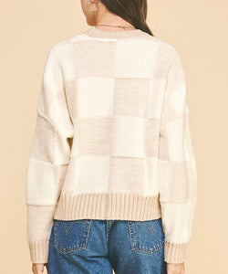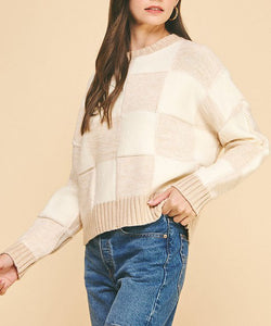 This soft and cozy sweater features a crew neckline, pullover design and a chic check pattern. The perfect go-to sweater done in a neutral palette that can be styled or work or play.