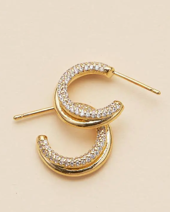 Add a touch of elegance to your look with our Double Layered 18K Gold Dip CZ Open Hoop Earrings. These hoops feature a unique layered design and sparkling CZ stones, making them the perfect statement piece for any occasion. Elevate your style game with these edgy earrings.