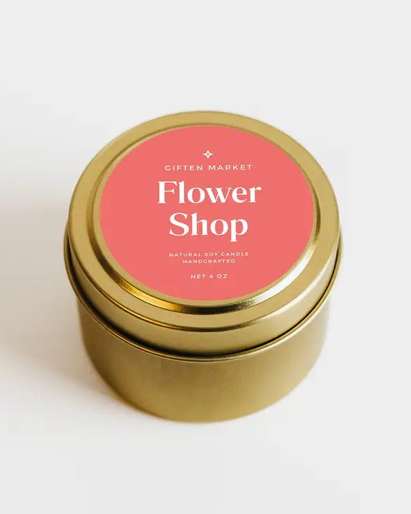 Step into a sun-drenched Andalusian garden with the Flower Shop Gold Travel Candle. This candle's fragrance opens with a vibrant burst of tuberose and orange blossom, instantly transporting you to a floral paradise.