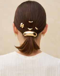 Add a touch of magic to your everyday hair with the Kitsch Gold Metal Cloud Pins. Light and secure, they’re perfect for pinning back bangs, smoothing fly aways, or sprinkling a little golden sparkle—wear one for a subtle shine or stack all three for a fun, cloud-inspired look.