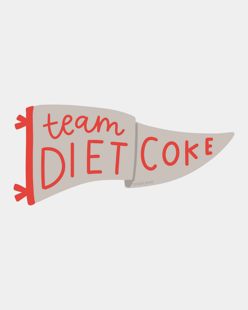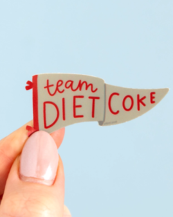 Celebrate your soda obsession with the Team Diet Coke Decal Sticker, featuring a lively pennant flag design that proudly shouts "Team Diet Coke." Made from sturdy, weatherproof vinyl, this sticker adds a fun and lasting flair to your laptop, water bottle, car, or anywhere you want to show off your soda pride.