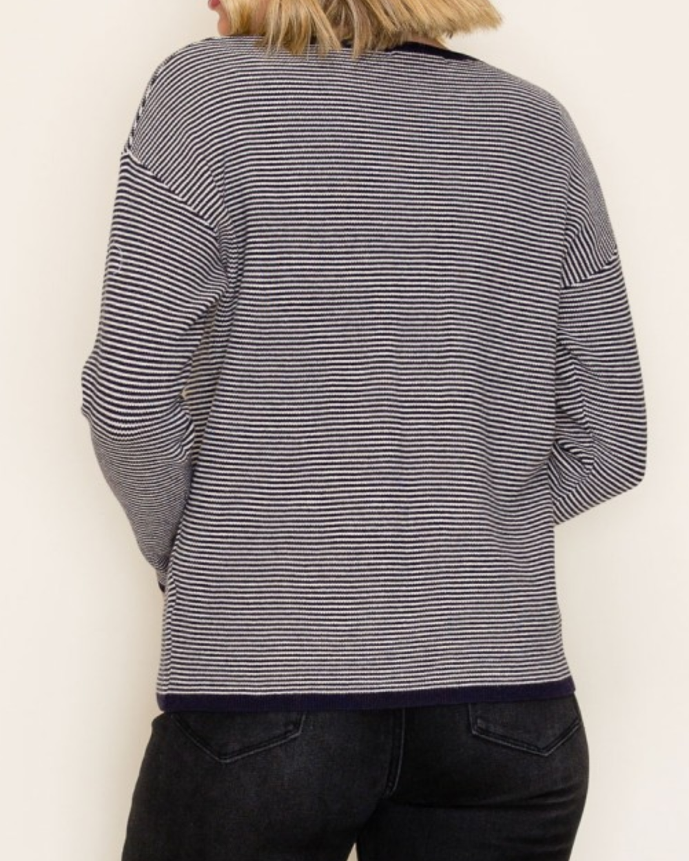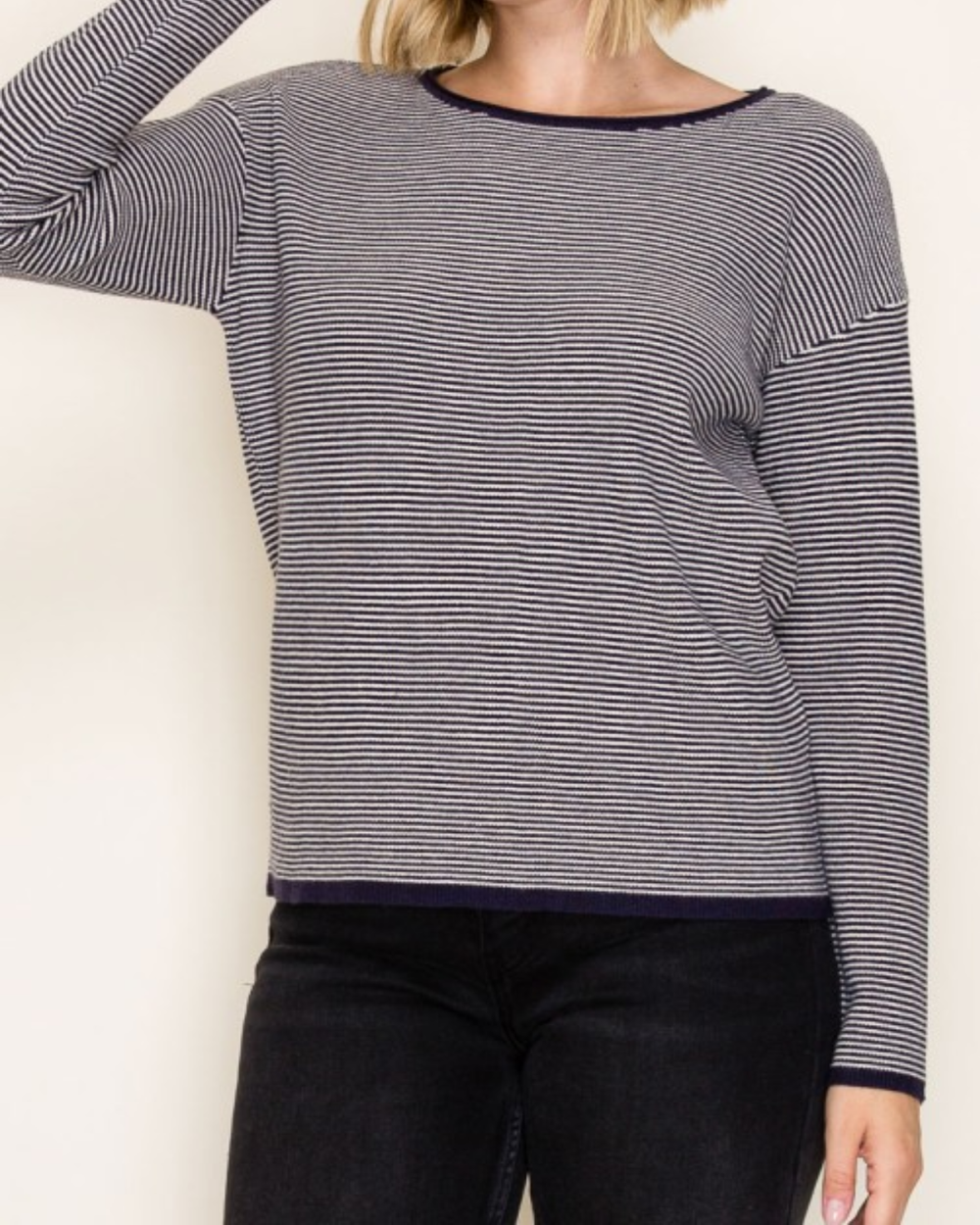 Cozy up in this waffle-textured, pinstriped pullover that brings comfy vibes with a playful twist.