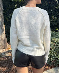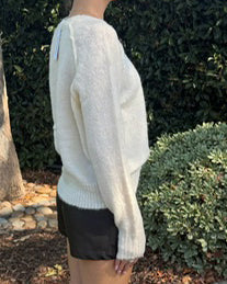Elevate your fall wardrobe with this ivory pullover sweater featuring a subtle bow design detail on the front for a refined touch. Crafted from a soft fabric, it offers cozy comfort while the long sleeves provide warmth during cooler days. Perfect for layering or wearing on its own, this sweater blends classic elegance with seasonal practicality.