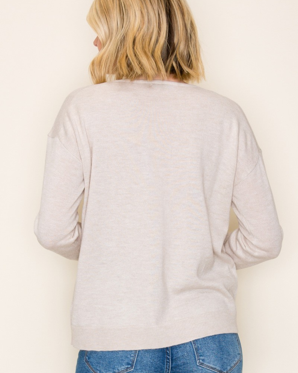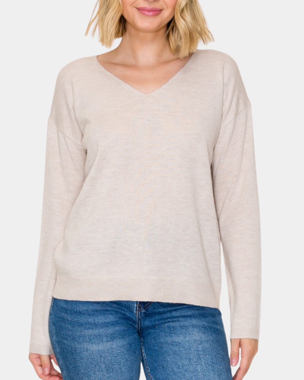 Cozy up in effortless style with this grey V-neck pullover. Perfect for layering or going solo, it's your new go-to for looking put-together without trying too hard. Soft, versatile, and endlessly wearable.