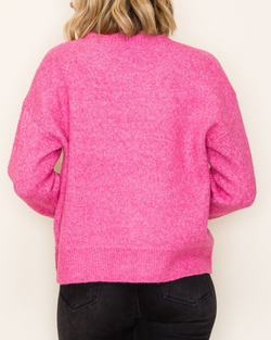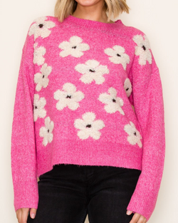 Brighten your day with this hot pink flower jacquard sweater that’s bursting with playful charm. It’s the perfect cozy pop of color to make every outfit bloom with fun.
