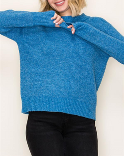 Get cozy in this blue ribbed crew neck pullover sweater that’s as comfy as it is cute. Perfect for adding a splash of blue and a dash of fun to your chilly day wardrobe.