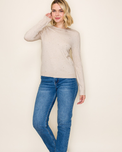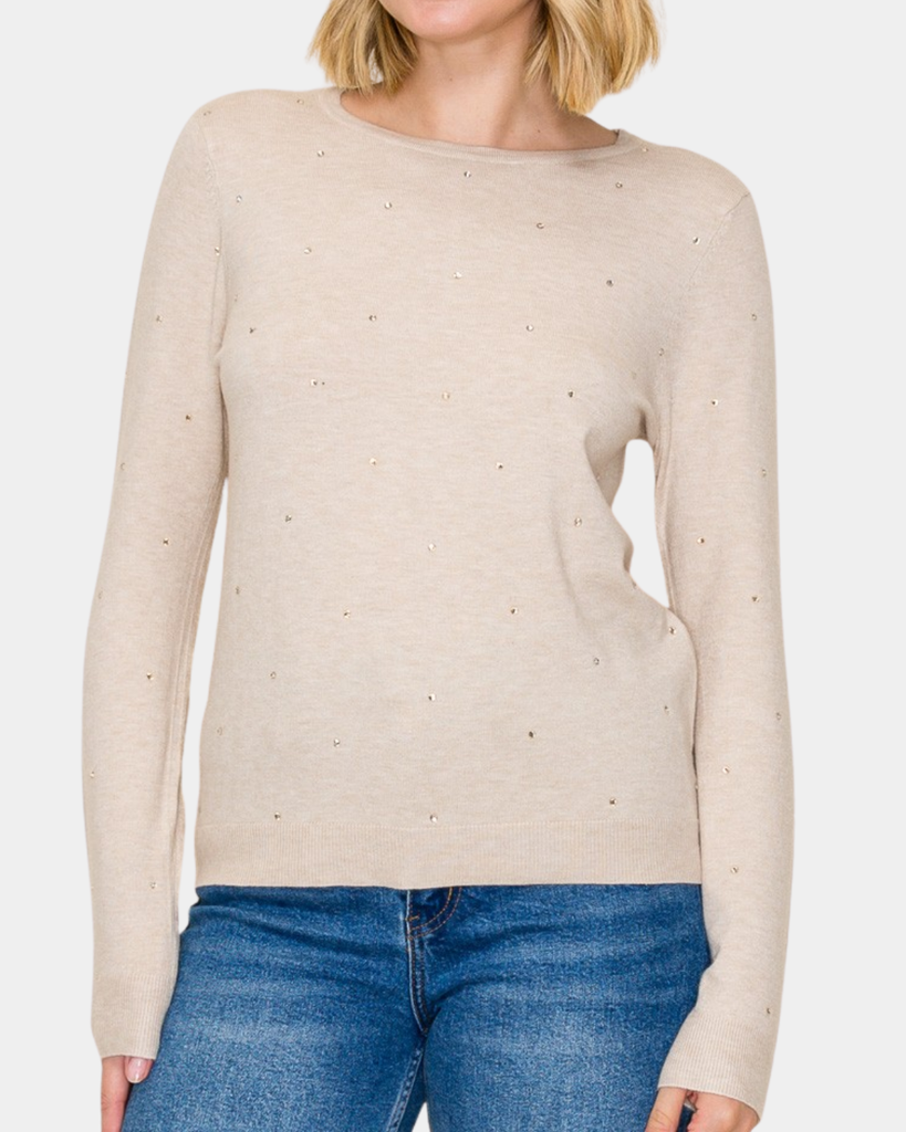 Stone Embellished Sweater - Oatmeal