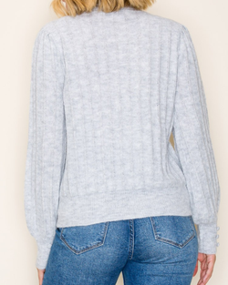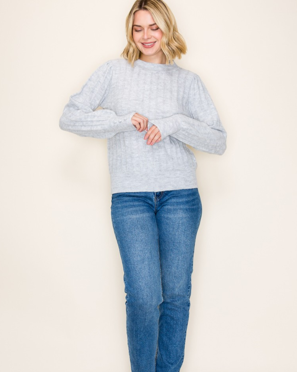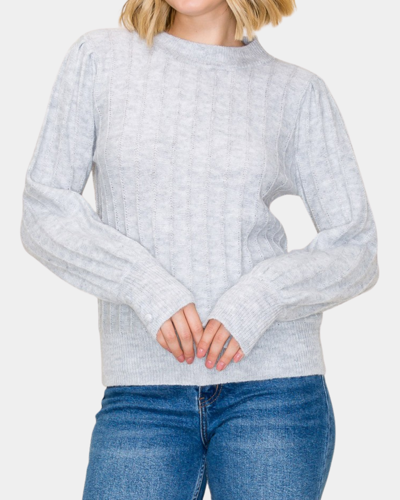 Cozy up in effortless style with this charming vertical stripe crew neck sweater. The heather grey base pairs perfectly with crisp stripes for a look that's both timeless and fun.