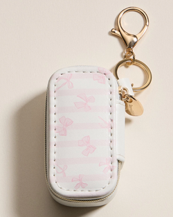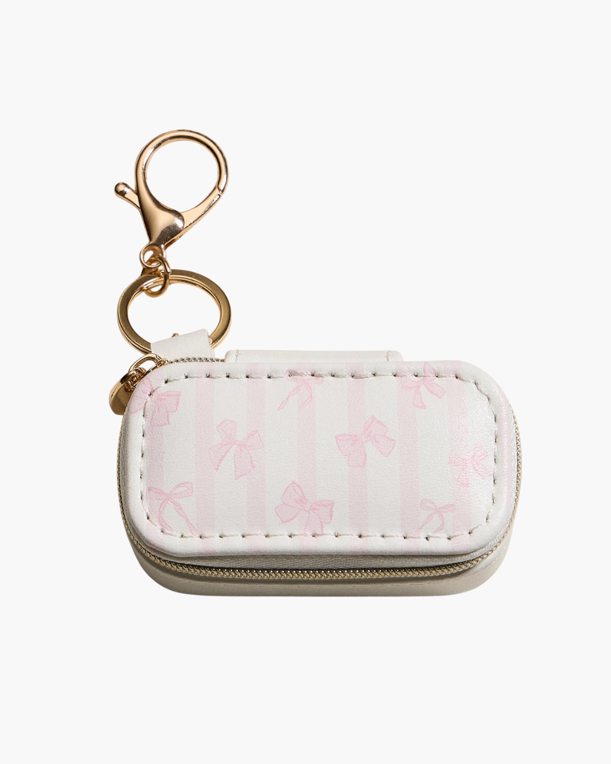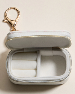Toss this adorable printed jewelry case into your bag and never lose a precious piece again. With velvet-lined compartments for rings, earrings, and necklaces, plus a trusty zipper and gold keychain clip, it's your stylish travel buddy. Perfect for on-the-go glam or gifting.