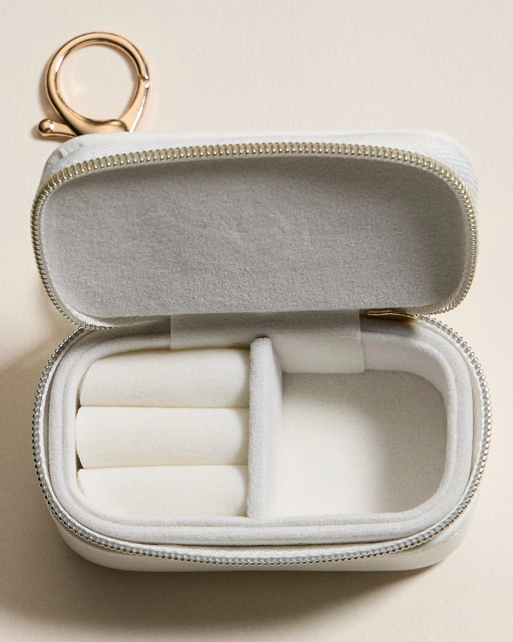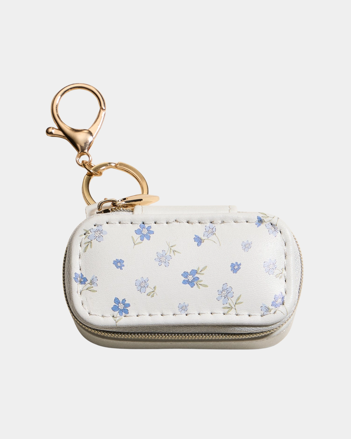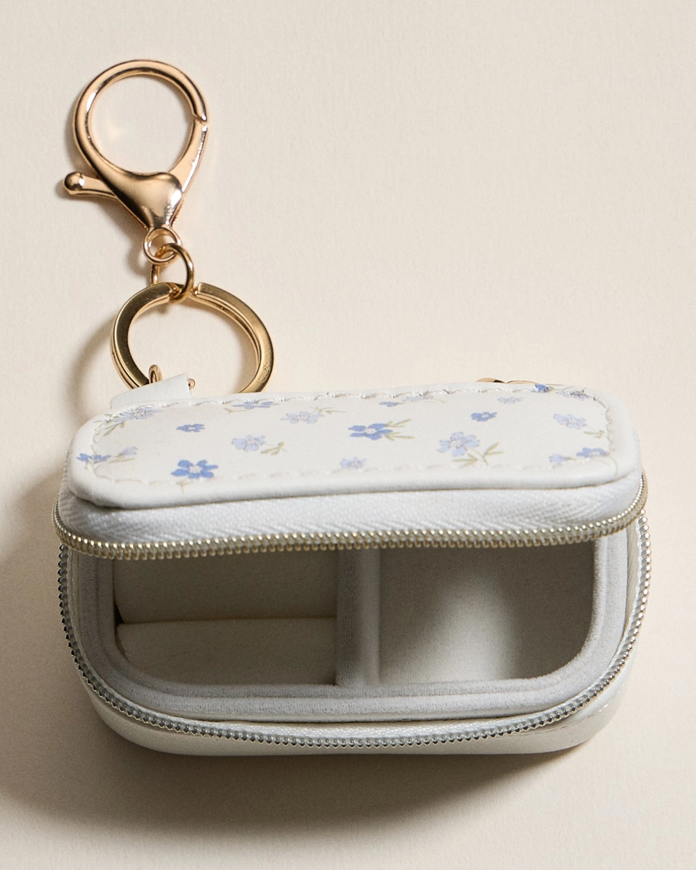 Tiny case, major style. This floral keychain jewelry organizer keeps rings, earrings, and charms safe and sound with its zippered design and soft-lined slots. Perfect for tossing in your bag and taking anywhere.