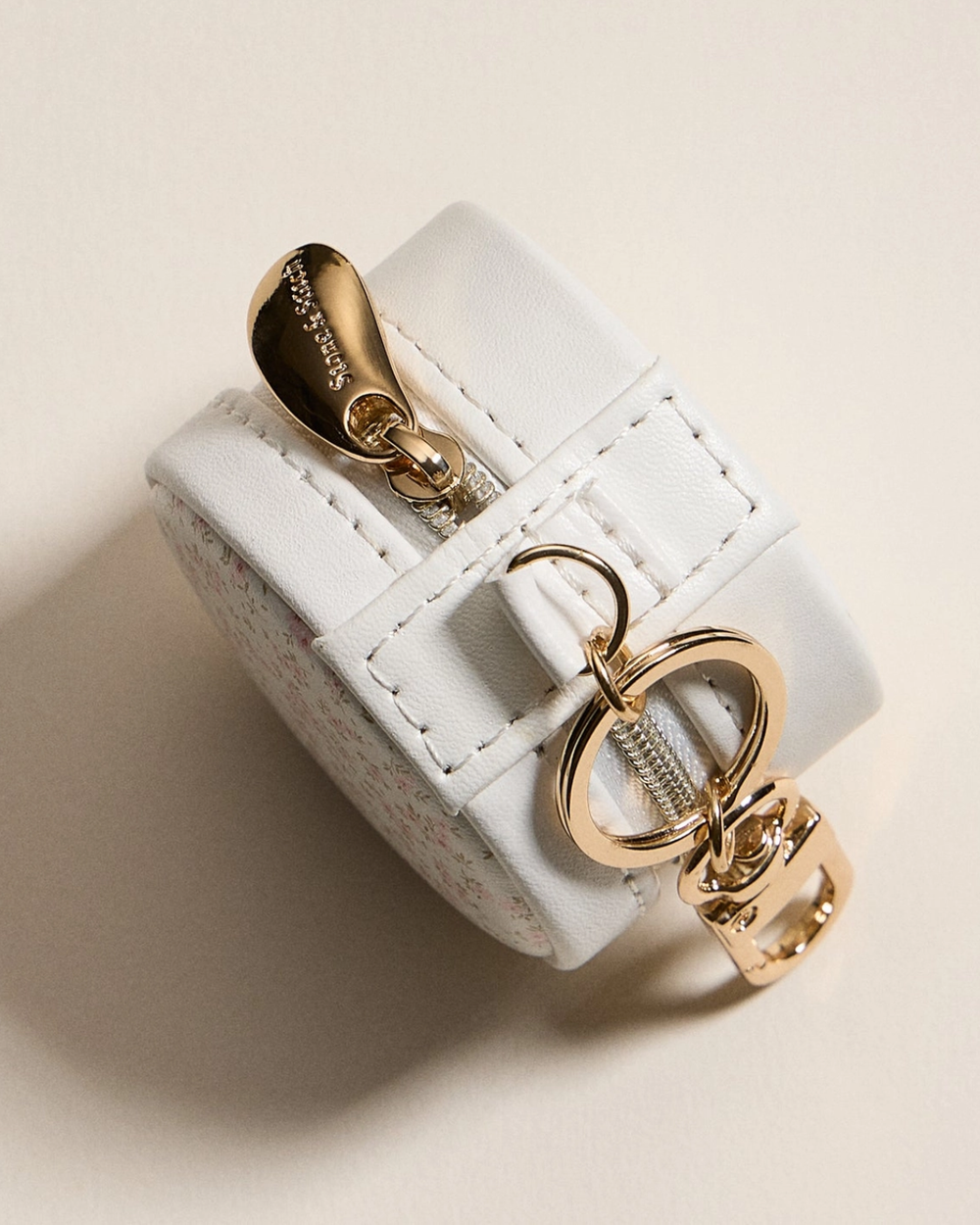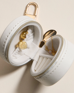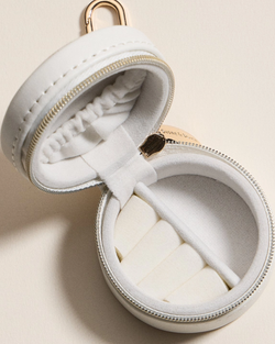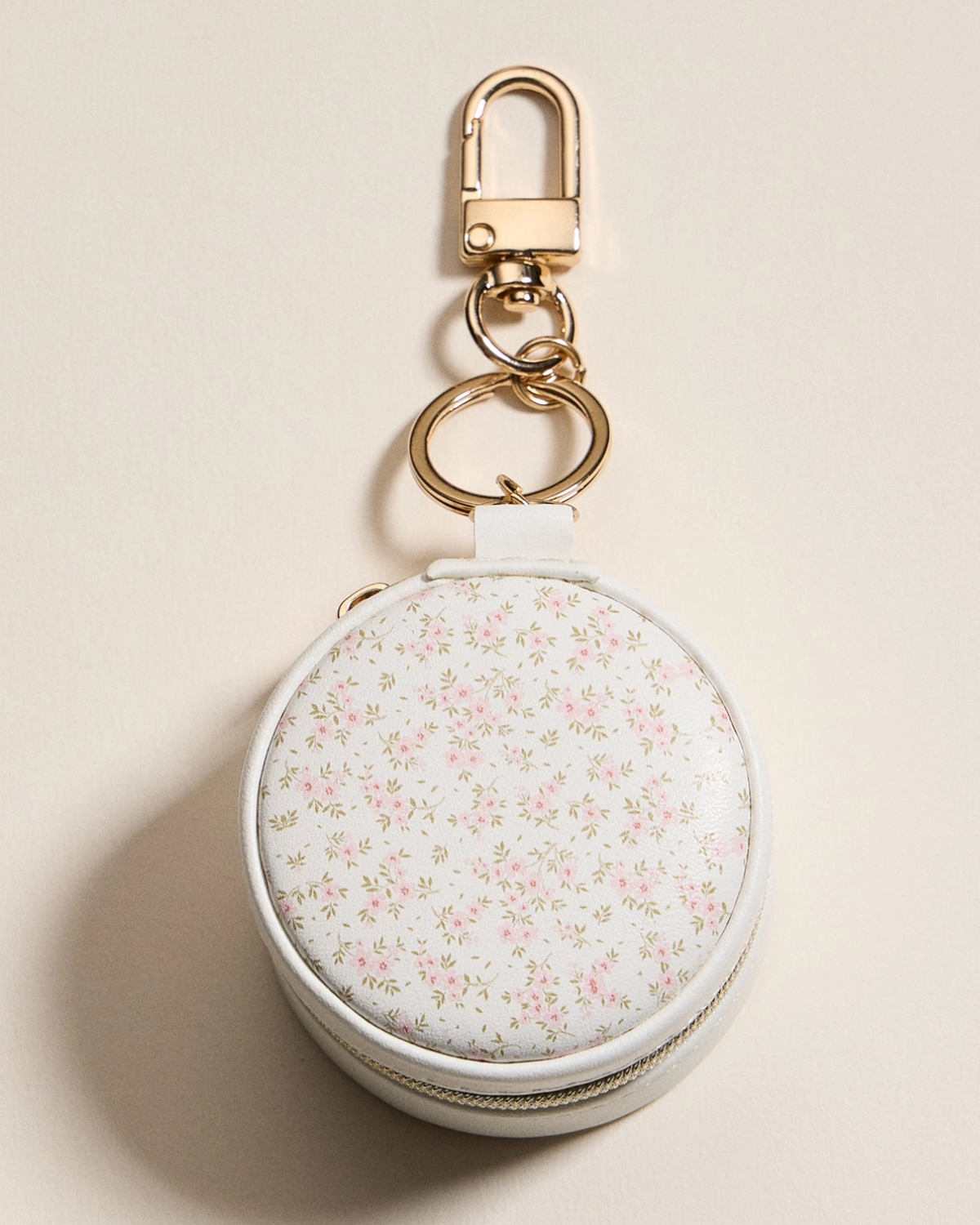 Round Jewelry Travel Case Keychain - White/Pink Floral