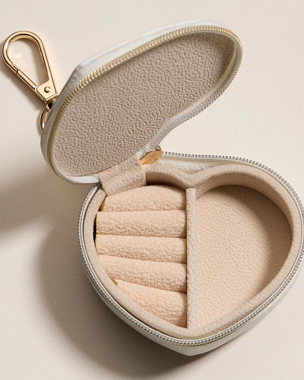 Keep your jewelry safe and stylish on the go with this heart-shaped case. Featuring a cute floral design and plush compartments for rings, earrings, and delicate pieces, it's the perfect compact companion for travel or daily adventures.