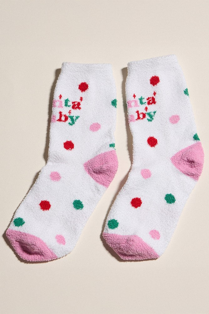 Get festive with these fuzzy socks, featuring playful holiday prints. Perfect for cozying up and spreading holiday cheer.