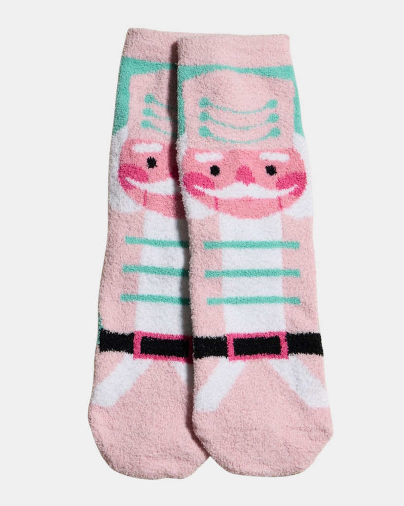 Get festive with these fuzzy socks, featuring playful holiday prints. Perfect for cozying up and spreading holiday cheer.