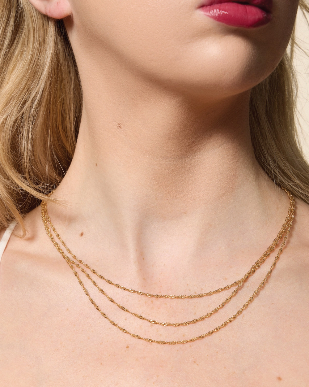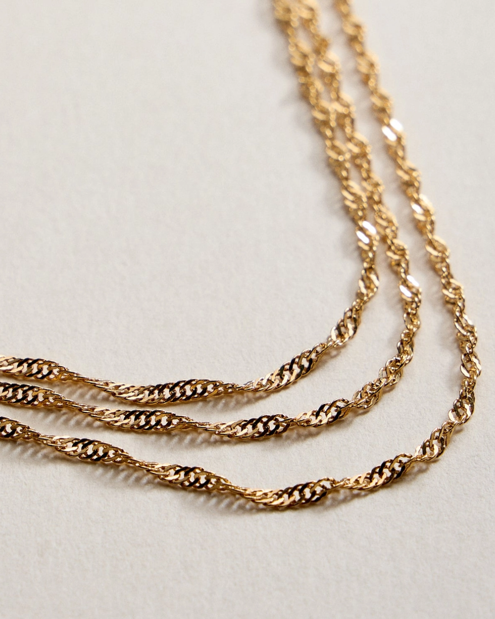 Crafted from gold-filled metal, this rope chain necklace showcases a refined twisted design with exceptional light-reflecting qualities. Wear it solo for understated elegance or layer it with other pieces for added dimension. A versatile, enduring staple for any jewelry collection.