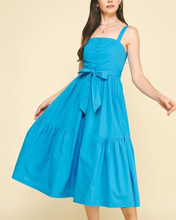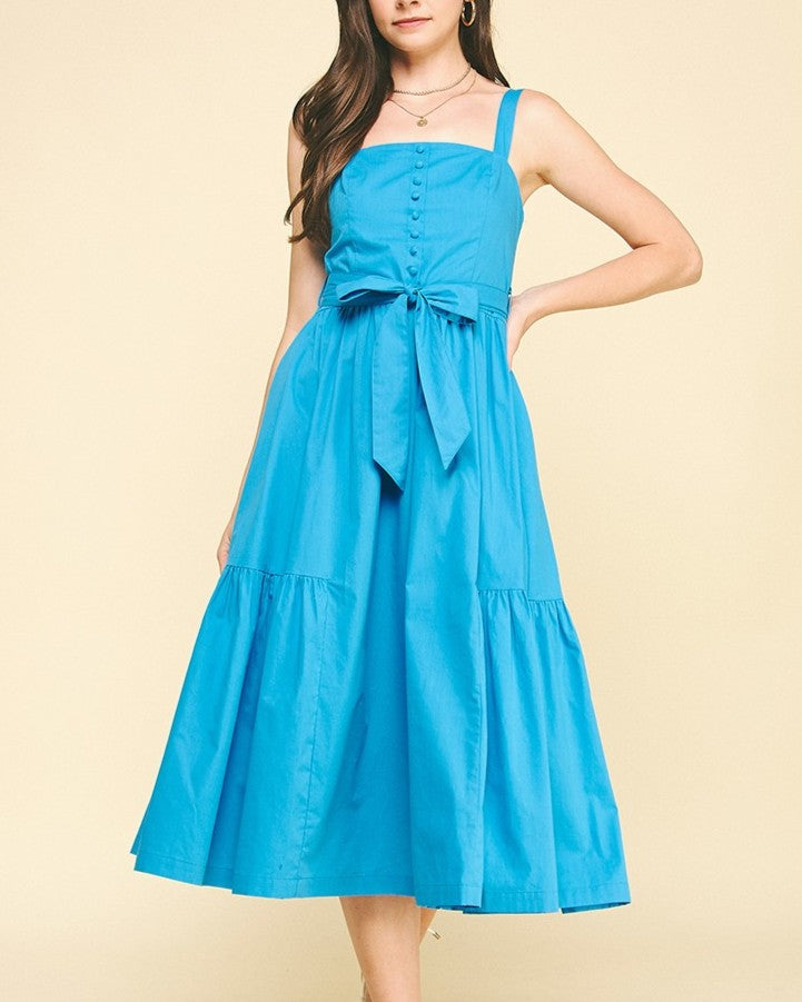 Step into sunshine with this Solid Tiered Midi Dress in Summer Blue. Featuring charming button details and a flattering belt, it’s perfect for twirling through warm days. The tiered design adds playful movement, making every step feel light and breezy. Ideal for casual outings or garden parties, this dress brings effortless style and a splash of summer fun to your wardrobe.