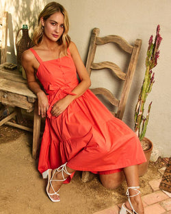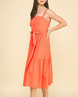 Step into sunshine with this gorgeous midi dress. Featuring charming button details and a flattering belt, it’s perfect for twirling through warm days. The tiered design adds playful movement, making every step feel light and breezy. Ideal for casual outings or garden parties, this dress brings effortless style and a splash of summer fun to your wardrobe.