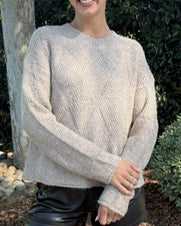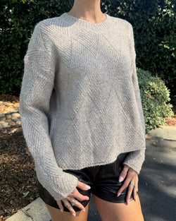 This taupe sweater top combines comfort and subtle style with its relaxed fit and classic crew neckline. Designed for fall wear, it features long sleeves and a textured diamond pattern that adds visual interest without overwhelming. Its soft fabric ensures warmth and ease throughout the day, making it a versatile layering piece or a stand-alone pullover for cooler temperatures.