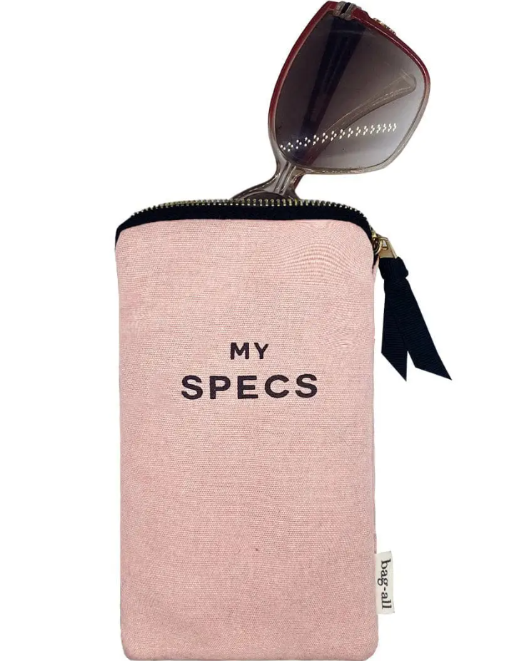Need a way to keep your sunglasses from being scratched or lost? Our My Specs Glasses in blush pink are the perfect solution! This case has a pocket on the back, which is great for storing another pair of glasses or even some phones (please note that larger phones do not fit).