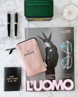 Made of high quality natural cotton, this case keeps your glasses secured with a durable gold metal zipper for easy and secure closure. The chic black print on our signature blush pink fabric makes this case the perfect gift for all the stylish people in your life! Our specs case fits most eyeglasses frames while still being small enough to easily slip into any bag.