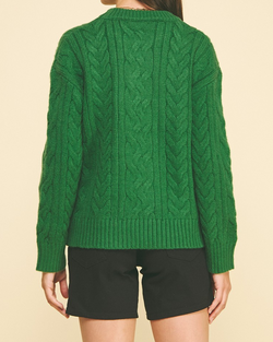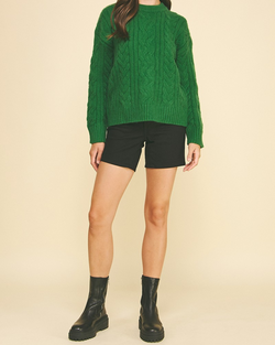Cozy up in this green cable knit sweater that’s as charming as a fresh forest breeze.