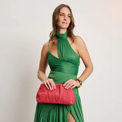 The Breeze Clutch in Coral combines refined pleated weaving with a structured frame that holds its elegant shape. Perfectly proportioned for essentials, it transitions seamlessly from day events to evening occasions—weddings, weekends, and beyond.